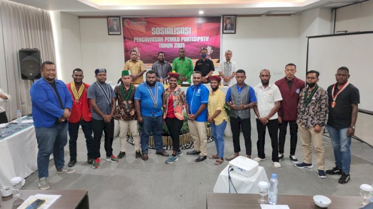 KOTA SORONG, Badan Pengawas Pemilu (BAWASLU) Kota Sorong menggelar kegiatan Sosialisasi Pengawasan Pemilu Partisipatif bertempat di Hotel Kyriad Kota Sorong, Senin/31/05/2021.