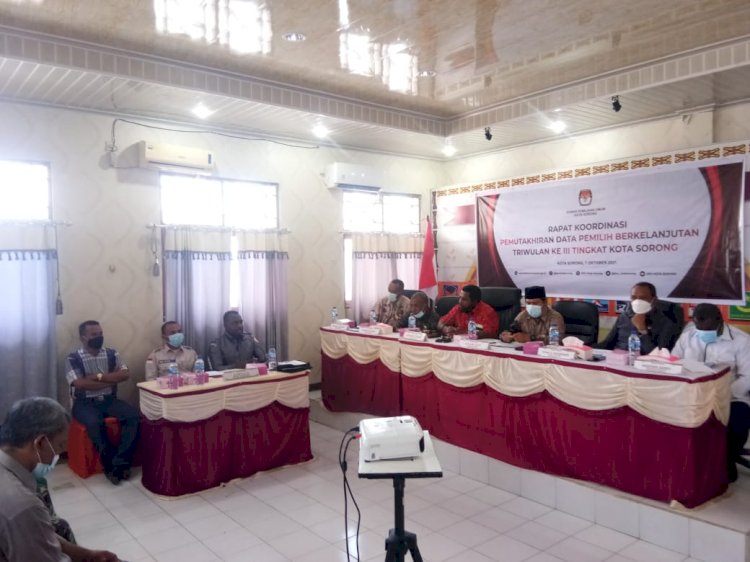 Hasil rekapitulasi Pemutakhiran Data Pemilih Berkelanjutan Triwulan III Tahun 2021 Tigkat Kota Sorong adalah 144.796 Pemilih yang terdiri dari 74.139 Pemilih laki-laki dan 70.657 Pemilih perempuan yang tersebar di 10 Distrik dan 41 Kelurahan di Kota Sorong.