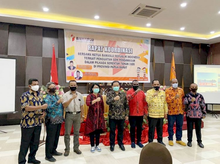 Kota Sorong - Badan Pengawas Pemilihan Umum (BAWASLU), Rapat Kordinasi yang dilakukan oleh Bawaslu Provinsi Papua Barat bersama Ketua Bawaslu RI, terkait penguatan SDM pengawasan dalam Pilkada serentak Tahun 2020, Bertempat di Hotel Belagri Kota Sorong Provinsi Papua Barat, Sabtu (31/11/2020)